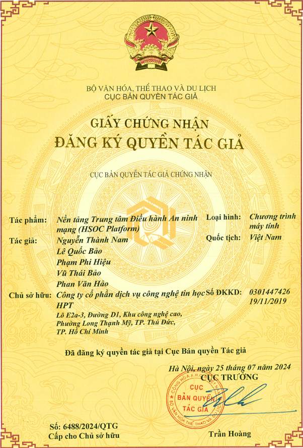 Nền tảng HSOC Platform được cấp Giấy chứng nhận Đăng ký Quyền tác giả