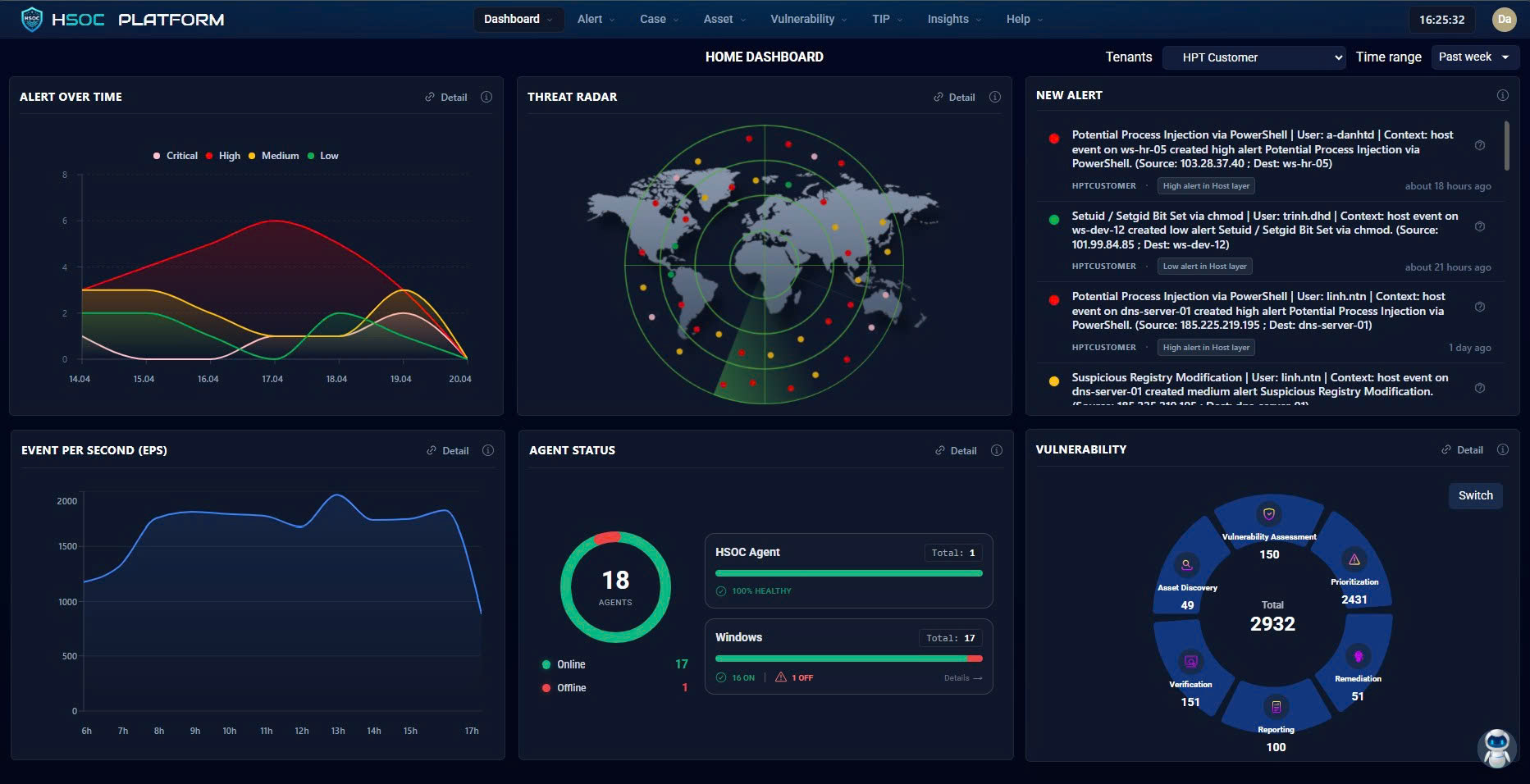 Giao diện dashboard giám sát tổng quan trên HSOC Platform