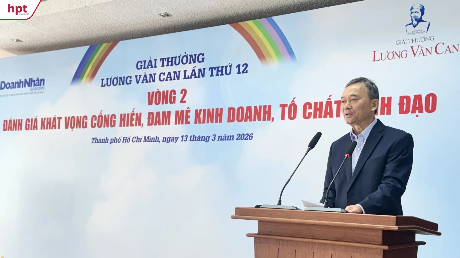 Ngày 13/03/2026, Vòng 2 – Vòng Bán kết của Giải thưởng Tài năng Lương Văn Can lần thứ 12 đã diễn ra với sự tham gia của các sinh viên xuất sắc được tuyển chọn từ 38 trường đại học, cao đẳng trên địa bàn TP.HCM. Với mong muốn góp phần bồi dưỡng và khuyến khích thế hệ doanh nhân trẻ tương lai, anh Ngô Vi Đồng - Chủ tịch HĐQT HPT tiếp tục đồng hành cùng Giải thưởng Tài năng Lương Văn Can lần thứ 12 trong vai trò doanh nghiệp hỗ trợ và tham gia chấm giải. Hoạt động này thể hiện cam kết của HPT trong việc lan tỏa tinh thần học tập, sáng tạo và khởi nghiệp bền vững trong cộng đồng sinh viên Việt Nam.